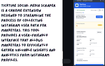 TickTime - Instagram Scraper is a free Chrome add-on designed to streamline the process of extracting data from Instagram. This tool allows users to gather valuable insights and information from Instagram profiles, posts, and other content with ease. Its user-friendly interface ensures that both novices and experienced users can navigate the application seamlessly.